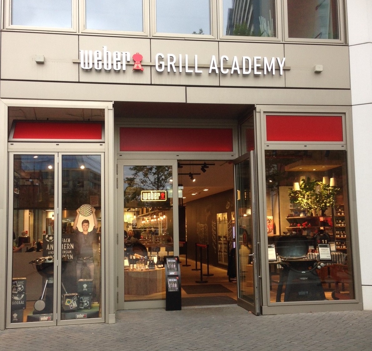 Wo war ich? Ach ja, Überflüssiges. Zwischen Alex und Hackeschem Markt gibt es eine ca. 200 m² große Verkaufsausstellung, in der sich Heerscharen von Männern mit lustigen Schürzen bekleidet vor sich hin mampfend um Kochgeräte gruppieren. Natürlich reden wir nicht von Töpfen und Pfannen - nein, wir sprechen von der Männerdomäne schlechthin: Fleisch! Über offenem Feuer! In diesem Fall in mattschwarzen Kugelgrills auf perfekt gelagerten Rollen mit Griffen und Hebeln und Ablagebügeln überall 'dran. Der Genusstempel heißt doch tatsächlich "Weber Grill Academy". Das musste erstmal sacken lassen. Und wenn es dann gesackt ist, guckste mal bei Google nach. Und jetzt wird's wirklich aberwitzig: Es ist nicht etwa so, dass die Firma Weber ihren Kunden was vorgrillt, um diese zum Kauf des perfekten Grills zu animieren. Nein: der Kunde muss 99 EUR berappen, um einen "Basic Kurs" in der Academy belegen zu dürfen und schlappe 145 EUR für "Exklusiv". Und alle Kurse sind .... na, was? Richtig: ausgebucht!!!
