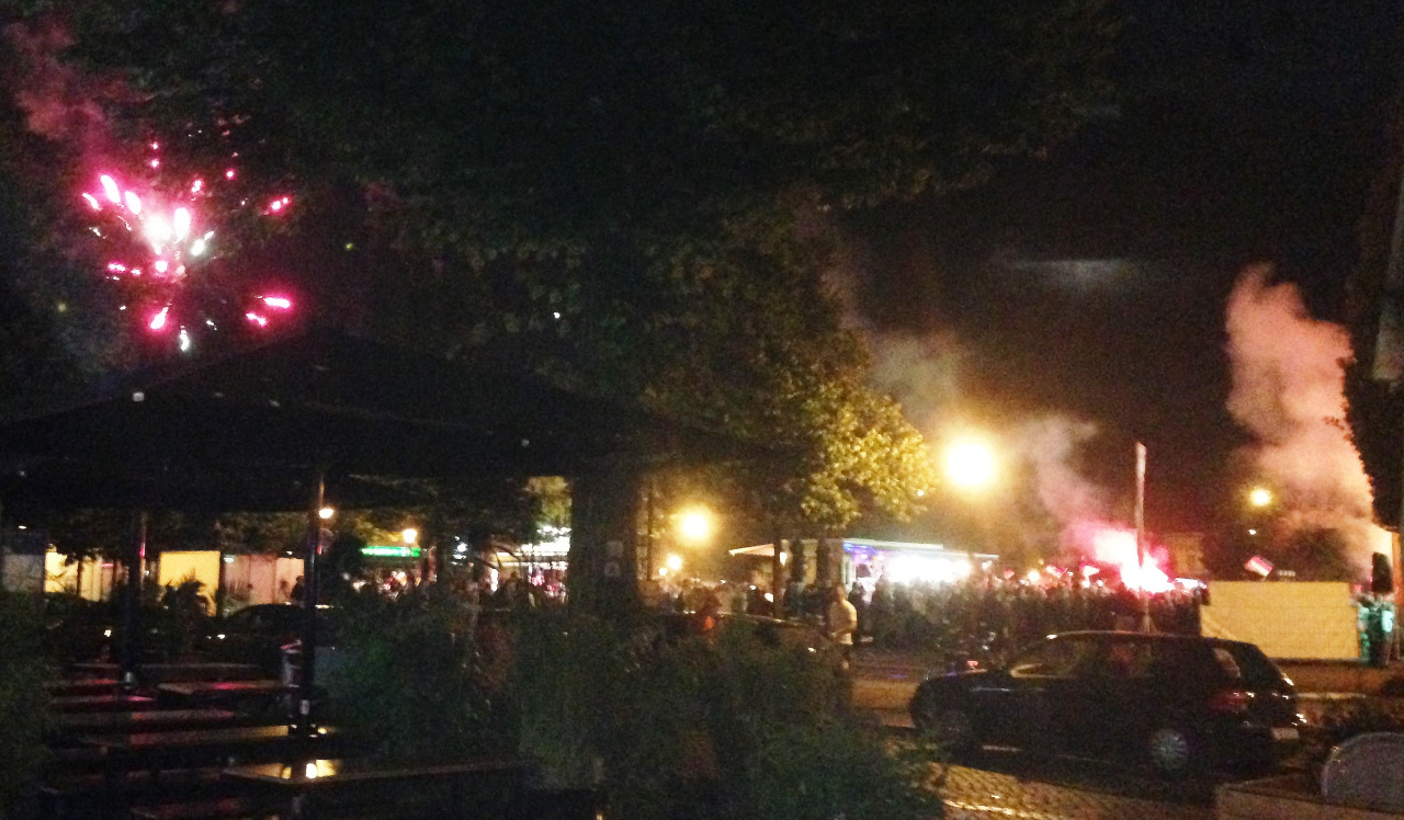 Potsdam völlig aus dem Häuschen - nach dieser adrenalinpumpenden Zitterpartie endlich das verdiente 1:0! Lesja und ich wollten das Endspiel eigentlich erst auf dem Luisenplatz vor der Großbildleinwand inmitten der gut geschminkten und mit Utensilien behangenen Menschenmenge gucken, aber ihre unendlich wertvollen Verbindungen zur Potsdamer Restaurant-Szene gestatteten uns dann doch, alterstypisch und etepetete an einem Tisch zu sitzen, hochpompforzionable Calamari und Antipasti zu futtern und dabei direktemang auf den unverstellten Bildschirm zu linsen, denn der Tisch wurde extra für uns dorthin geschoben - als wir spontan kurz vor neun da auftauchten.